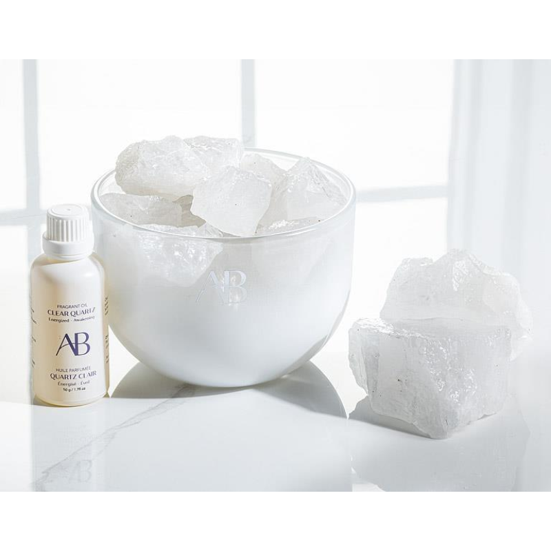 Fill your space with the intoxicating fragrance of guava, lychee, melon and orange blossom essential oils in this modern Clear Quartz Crystal Frangrance Bowl. Clear Quartz helps to balance emotions and find clarity. Pour over a few drops of fragrant oil to your preferred fragrance level and refresh as often as desired.