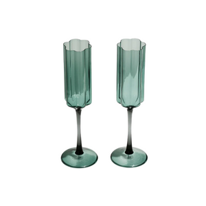 Featuring an elongated flute, a fine stem, and a little finesse, these glasses are made for sipping and celebrating. Each piece is delicate, unique and handmade which means you may find some slight variations in shape, colour or finish. All glass pieces are hand-blown and made from high-quality borosilicate glass.