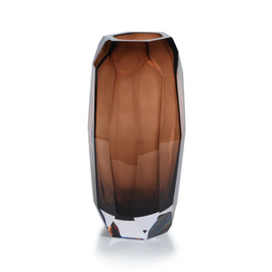 This stunning multi-faceted glass vase is a perfect accent to any room.