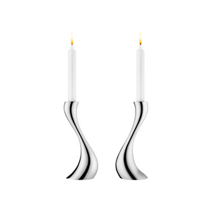 This candlestick is classic in its imposing silver form but witty because of its dramatic swerving body. The way it rises almost seems gravity-defying. It shares a number of qualities with its namesake: it is imposing, bold and striking.
