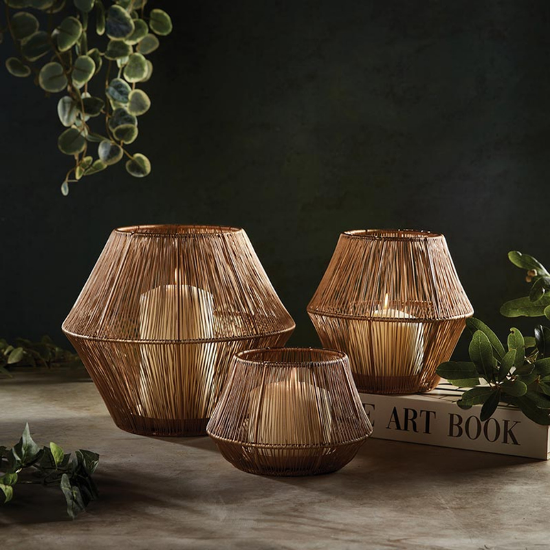 Elevate your décor with the stunning Gold Metal Wire Candleholder, available in three sizes to suit any setting. Featuring a sleek, modern design, these candleholders are perfect for holding both pillar and votive candles, making them a versatile and elegant choice for any occasion.