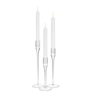 Crafted out of glass, the champagne flute-like style of this taper holder makes a stylish complement to dining tables, mantles, counters and more — and the perfect vessel for any taper candle. Also available in other sizes.