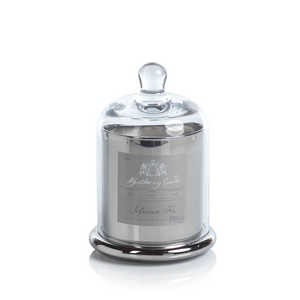 Elevate any atmosphere, visually and fragrantly, with this elegant silver Siberian Fir Candle. The complimentary dome adds a sophisticated touch that will keep your candle fresh and free of dust.