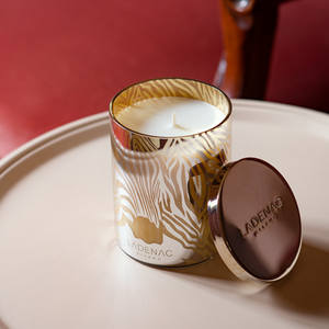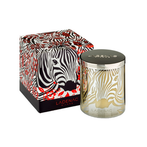 Zebra, from temptation to camouflage, avoiding discovery. Woody fragrance, mystery sprinkled with mischievous notes of spices. Laser-painted candles with metallic lid. Luxury designer box with stamp. Aromatic candles made of vegetable wax.