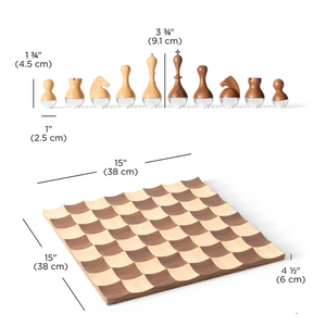 Get ready for a chess set like no other! The perfect combination of classic and modern, it's the ultimate showpiece for your living room! Crafted with care, this prize-winning chess set is made of beautifully polished maple and walnut wood.