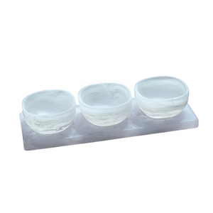 Dimensions: Tray: 13" x 4.7" x 0.7", Bowls: 3.9" x 3.8" x 2"