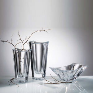 This vase has a traditional tapered square structure with thick walls, making for a very sturdy construction. The intricacy lies in the rounded interior, which is artfully crafted to blend seamlessly with the outer design, delivering a masterpiece. Made from 100% lead-free crystal.
