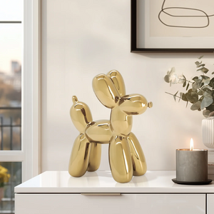 Playful yet polished, this ceramic balloon dog sculpture adds a pop of personality to any room. Its smooth finish and iconic form bring a sculptural edge to modern spaces, blending art and charm in one eye-catching piece. Perfect for shelves, consoles, or desktops that need a fun, design-forward accent.