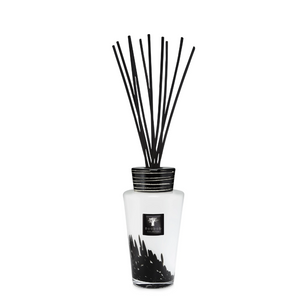 The Totem Feathers fragrance diffuser’s bottle showcases the mastery of our glass artisans, who arbitrarily inserted black confetti details into the hand-blown opaque white glass so as to create a feather effect. Adorned with a shiny black and white ceramic cap, Totem Feathers is a unique and decorative object to introduce into your interiors.