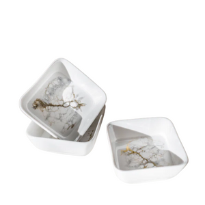 What truly sets these bowls apart are the stunning resin accents that embellish each piece, creating a unique, eye-catching design. The intricate patterns add a touch of artistry to your table, making these bowls ideal for serving dips, sauces, or condiments during meals, parties, or gatherings.