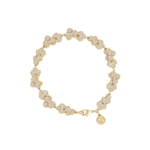 This gorgeous bracelet is made with 18k gold dipped brass and adorned with countless hand-set crystals. Its delicate design is both stylish and comfortable to wear, with orchid clusters that are hinged for added movement and sparkle. Wear it on its own or stack it with other bracelets for a touch of elegance day or night.