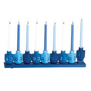 Surround your Chanukah celebration with the excitement and meaningful presentation of the Dreidel! Artistically fashioned and constructed of hand-painted resin, this Menorah will be a memorable favorite for many years to come!