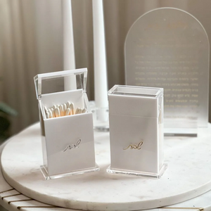 This clear & lucite matchbox with mirror embossed text adds a subtly elegant touch to an already magnificent product. Available in two popular color and text combinations. This is bound to add splendor to your Shabbos candle lighting experience.