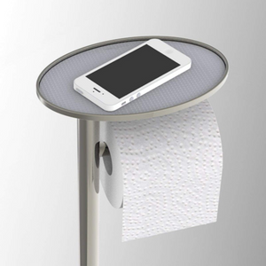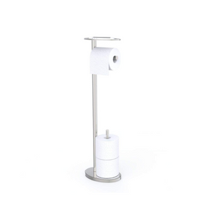 This caddy includes a tray for your electronic device or personal wipes and storage for two additional tissue rolls, all in one contemporary, streamlined caddy!