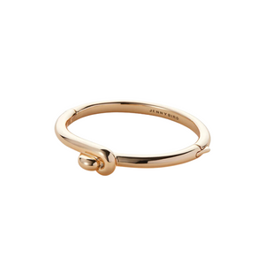 An elevated knot anchors this beautiful bangle, adding fluid texture to your stack. This custom design opens and closes with a hinge and tab lock closure. Listen for a "click" to ensure tab is locked properly.