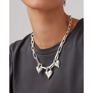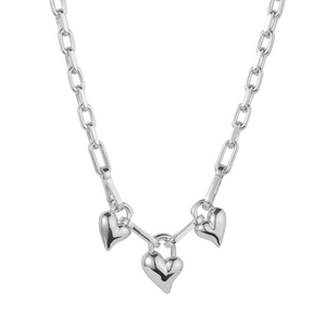 Three removable hearts are hooked onto crisp, faceted links. Play around with this chain to achieve different looks: remove one, two or all three hearts using the mini carabiner clasps, or split the chain in half to use it as a bag charm or keychain. Finished in high-polish silver.