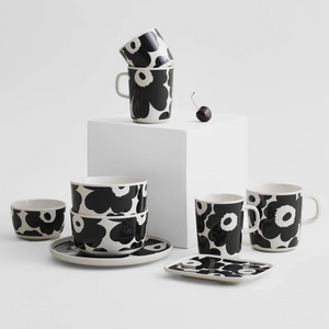 The Oiva plate is made of dishwasher, oven, microwave and freezer safe white stoneware.Marimekko’s famous pattern Unikko was born in 1964.