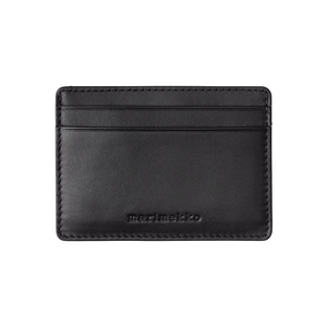 The Cardholder is made of leather with a metallic foil. The front of the cardholder is padded and it features the topstitched Unikko pattern. The cardholder has two card slots and the debossed Marimekko logo on the back.