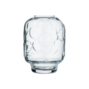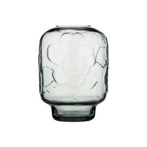 This glass vase features the embossed Unikko pattern. We recommend washing the vase by hand. Marimekko’s glassware items are mouth blown into a mold. Being made by hand, they may contain small signs of craftsmanship. Slight variation between products is natural.