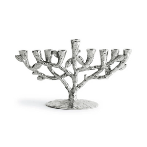 This menorah takes its inspiration from the imagery that floats around classic storytelling. It evokes a sense of charm and fantasy. Drawing profoundly from Michael's background as a sculptor, each piece emerges from hand-sculpted clay and offers a child-like quality with an inherent depth of meaning.