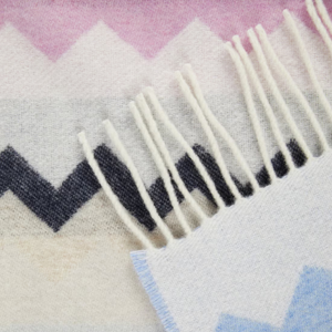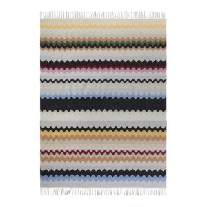 The Clifford plaid blanket is one of a kind and follows a precise aesthetics with its zigzag pattern and fringed edges. It has the special warmth of a textile blend with wool and Missoni's iconicity.