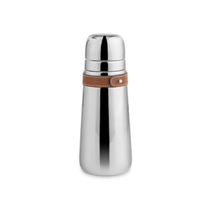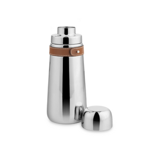 A sleek and modern stainless steel barware collection, Tahoe blends high shine and rich brown leather for a strikingly refined design. An essential tool for any bar, the Tahoe Cocktail Shaker comes with a strainer top that fits neatly under the lid, making shaking and pouring a favorite cocktail a breeze. The leather accent is removable for easy dishwasher clean up.