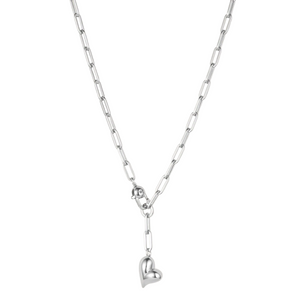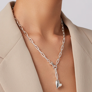 A joyful, inflated heart is suspended from a paperclip link chain necklace. Finished in high-polish silver.
