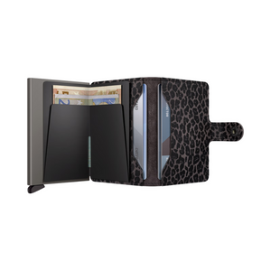 Small in size and surprisingly large in storage capacity, the Miniwallet combines the best of both worlds. The exterior holds banknotes, receipt and cards, while the aluminium Cardprotector allows you to slide out cards with one simple motion and protects them from bending, breaking and unwanted wireless communication.