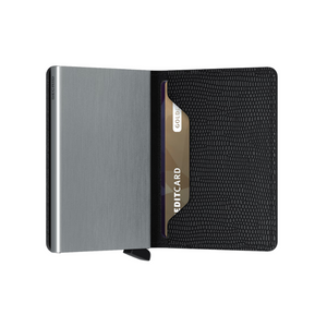 The Slimwallet is a modern take on the classic billfold. Its extra slim profile, without a button or magnet closure system, fits perfectly into every pocket. The generously cut leather holds at least six additional cards, banknotes and business cards.