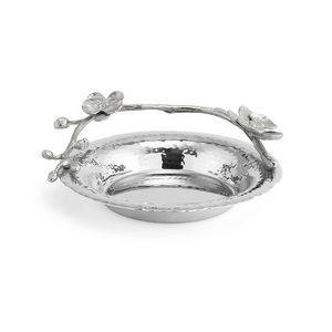 The Michael Aram White Orchid Collection illuminates the ethereal spirit of the orchid flower. Evocative of purity, delicacy, femininity and grace, the white metal version offers a strikingly different appeal than its black counterpart.