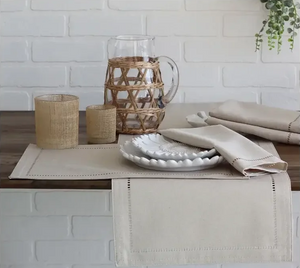 These polyester napkins are hemstitched and feature a beautiful linen detail. Perfect for any occasion.