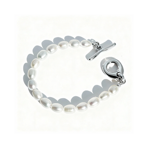 Named after Corrine’s grandmother, Tasia features a luminous stream of freshwater pearls and a custom toggle and bar crafted from a pebble found on her grandmother’s beach in Greece. This modern heirloom is rooted in nostalgia and designed for effortless, lasting wear.