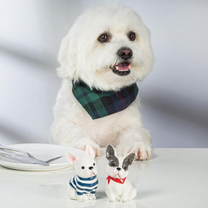 This Frenchie pair is here to spice things up. With sculpted faces and contrasting grey and white finishes, these ceramic shakers bring personality to the table.