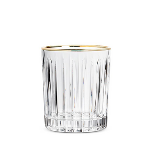 This tumbler is dressed to impress. Featuring a gold rim that catches the light, it raises the bar on water, whiskey, or anything in between.