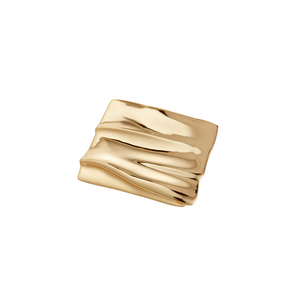 A tile-shaped brooch with a surface that mirrors the natural grooves found in sand dunes. Outfitted with a pin on a hinge and finished in high-polish gold.