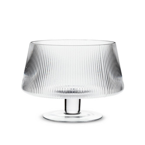 Sleek and structured, this optic glass bowl delivers elegance from every angle. Use it to serve sweets, display fruit, or simply catch the light.