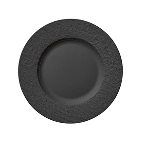 The artisanal style in the form of matte slate-looking porcelain makes this collection truly unique. This versatile black dinner plate from Manufacture Rock can also be used to serve fruit or pastries.